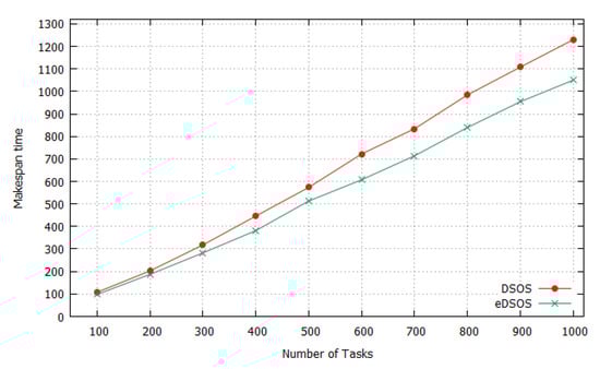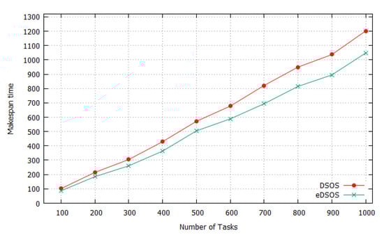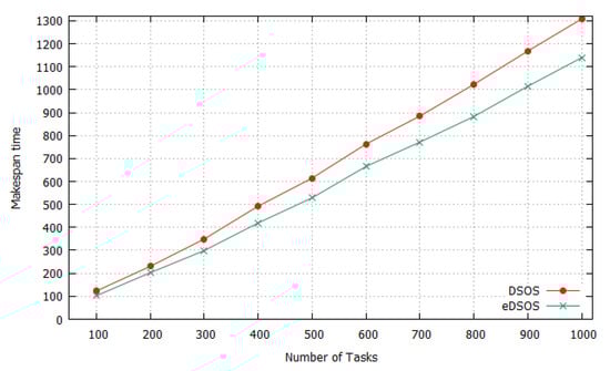 Comparison of the makespans of DSOS and eDSOS for the uniformly distributed dataset.