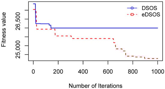 However, in the mutualism stage of eDSOS, , which is the organism with the best fitting value, is substituted with , as presented in Equations (10) through (13), in which and are the global and local optima, respectively. This is because this strategy extends the search space and increases the diversity of the ecosystem []. In the commensalism stage, modifications were made to improve the local exploitation ability. Here, the coefficient is replaced with , as shown in Equation (12), as well as Algorithm 3.