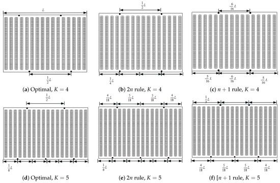 As it would be time-consuming to calculate the distance matrix and acquire the optimal solution by solving the proposed workstation location model (i.e., Equations (18)–(22), which is NP-hard) for medium and large-scale warehouses, even though it is tractable, we herein propose some general design rules by which the workstations can be easily deployed. We perform numerical experiments to verify the validity of these rules. If the number of workstations to be located on the top (or the bottom) is n, the width (in meters) of the warehouse is w, then we have two rules: