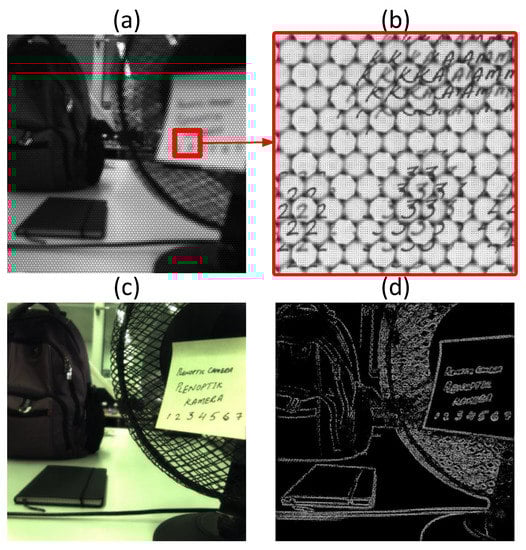 Within the plenoptic camera, a micro-lens in the MLA focuses a segment of main-lens image on the sensor with its own perspective. These micro-lenses either have similar focal lengths, or they consist of different focal lengths (multi-focus) []. Hence, each micro-lens captures a part of the scene corresponding to its position and perspective. As a result, an image that consists of a grid of micro-images with distinct perspectives is captured, as shown in Figure 2. As the scene is captured with several focal planes, the output image can be refocused even after it has been captured. In this way, a scene is recorded with several perspectives just by taking a single picture. Moreover, depth of the scene is computed by evaluating this data, that too can be estimated just by single recording of the scene. The depth-of-field (DOF) of the plenoptic camera is higher in comparison to same configuration conventional camera []. It also reduces occlusion regions [] because of its large array of micro-lenses with small field view, which are closely interlaced together.