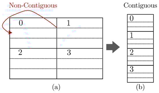Partitioned memory to ensure contiguous access. (a) Non-Contiguous (b) Contiguous.