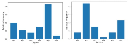 To provide further information about the distributions, the bar charts of the sector distribution and the degree distribution are provided in Figure 1. The exact names are removed and the terms degi and secj are used for privacy reasons.
