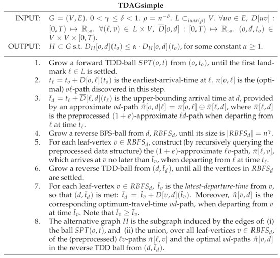 TDAGsimple has the expected time-complexity), and also returns an alternative graph H in which the minimum-travel-time for is, at most, a constant approximation of the minimum-travel-time forwithin G:, for some constant.