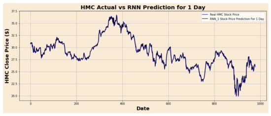 Figure 5, Figure 6 and Figure 7 show the actual value vs. predicted value curves for one-day time-interval of HMC using RNN, LSTM, and GRU, respectively. All of the models predict very well; however, GRU performs slightly better than the other two models. The results are summarized in Table 4.