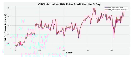 The main objective of this research is to predict the stock price using Recurrent Neural Networks (RNN) for three types of stocks: stocks for which price fluctuates significantly, stocks for which the price fluctuates moderately, and stocks for which the price fluctuates slightly. We did our research for three frequency domains: one-day, three-day, and five-day intervals. The motivation for using RNNs compared to other machine learning and statistical approaches is due to their effective prediction capability in time series analysis [,,] and their efficient representation-learning capabilities; raw input transformation can be useful while learning complex functions []. The multiple levels of RNN can be utilized for multiple levels of features, which can represent abstract features derived from previous levels, and thus, the level of abstraction is increased. Compared to typical networks with one hidden layer, RNN can achieve a higher level of feature extraction by adding extra hidden layers [,]. The adaptability of RNNs in a complex financial market acts as the primary motivation to analyze the performance of RNNs with stock market data.