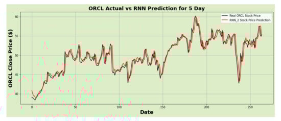 RNN can provide considerably good prediction for the temporal stock data. The hidden states of RNN are given by Equations (1) and (2) [].
