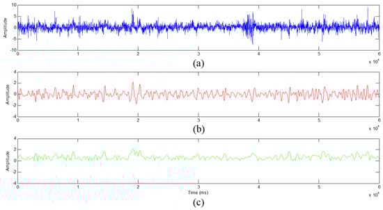 After that, the independent components of EEG signals are obtained by the Independent Component Analysis (ICA) method [], which decomposes the complex signal into several independent components. Moreover, the artifacts of eye movement and muscle constriction could be removed by an independent components rejection.