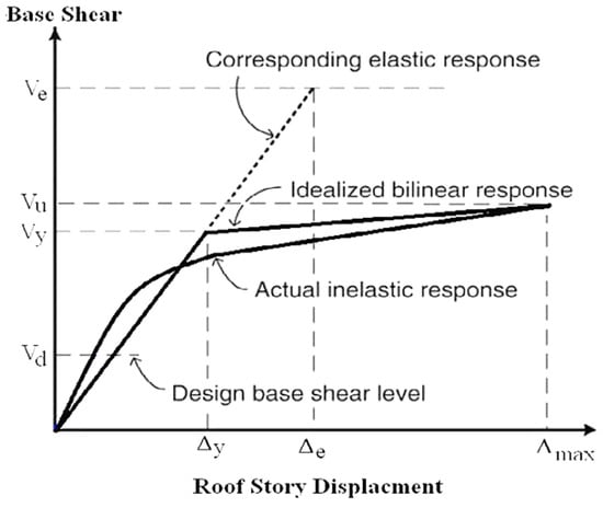 where is also noted as yield force based on the safety performance of the structure. Moreover, the over strength factor can be computed by Equation (7). Vs is the yield force based on the first plastic hinge [55].
