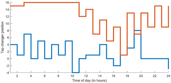 Tap changer settings for 24 h.