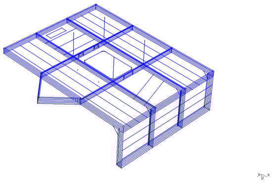 Let us now consider a more involved geometry describing a superstructure of a large yacht. This geometry will be denoted by and is depicted in Figure A1 and Figure A2. The generated mesh will have more than hundred thousand elements and we report the quality measures for the preconditioned recombination and the full recombination algorithms.