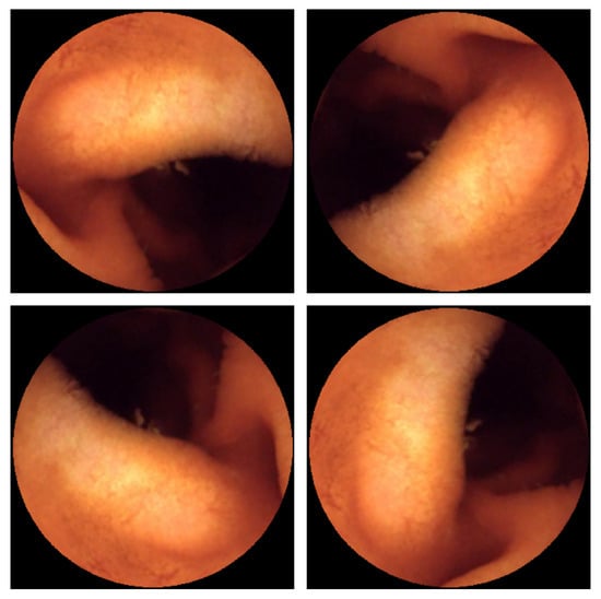 In this work, we used publicly available data from the o interactive database (KID) [20,21]. The database consists of two types of data: still frame images and videos. All data in the database was collected with a MiroCam device developed by IntroMedic Co in Seoul, Korea. The MiroCam has a recording frame rate of 3 frames per second [22]. However, the videos provided in the database are all MP4 files with a frame rate of five frames per second. Previous work [23,24,25,26,27,28,29,30] using this database focused on classification on the frame only data known as KID Datasets 1 and 2. These datasets were annotated by expert clinicians and come with both classification and segmentation labels. For the videos, only the KID video 1 contains classification labels and it is the only one to have been used in previous work [31] referencing the KID dataset. The other two videos are without expert annotation; with the help of our local Veteran’s Affairs (VA) Hospital, we are the first to use these previously unannotated KID videos. Our senior author, a VA physician with 20 years of GI experience, labeled videos 2 and 3 and adjusted the labels on the first video according to their findings. This resulted in three full-length capsule endoscopy videos with annotations that we used for cross-validation of our deep learning approach.
