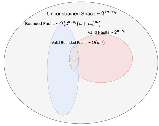To ensure consistency with the model, we can set , the number of outputs, so that it is never advantageous to break a gate over placing the faults at the very end of the circuit. The number of output bits is an upper bound on the number of faults of the minimal fault diagnosis. For individual instances, we can set to any value greater than the number of faulty output bits, which is less than or equal to .