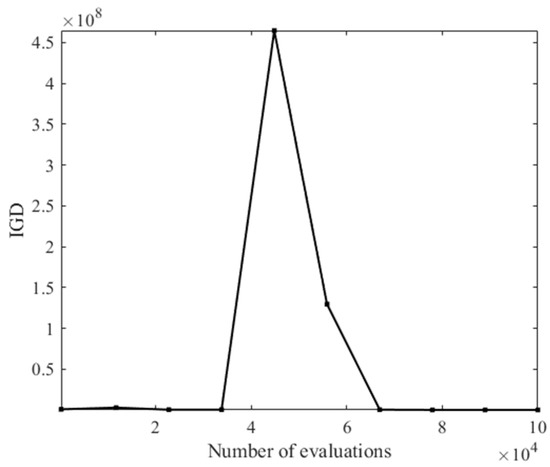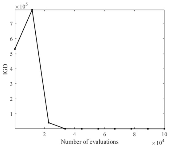 where is the solution set obtained by algorithm, is a set of points sampled from PF and is the Euclidean distance between point in the reference set and point in the solution set . The smaller the average IGD is, the closer P is to the true PF, and it is evenly distributed on the whole PF. Therefore, the IGD index can measure the convergence and diversity of the algorithm solutions to a certain extent.