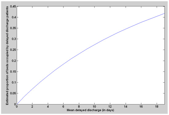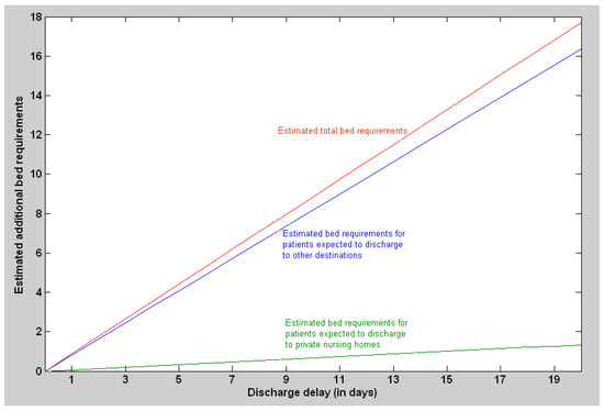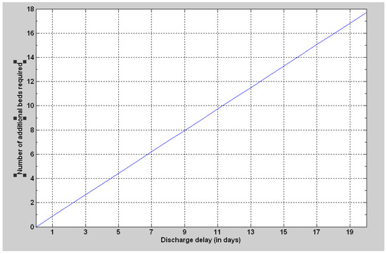 Figure 8. The estimated number of additional beds required in the stroke care unit with respect to the discharge delay (after 1000 days).