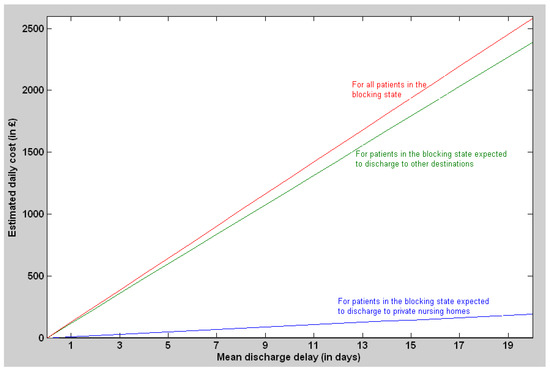 Discharge delay is defined as the inappropriate use of hospital resources by patients medically fit for discharge or transfer [10,20,21,22,23]. The scoping review in [6], define discharge delay as “an instance where a medically-fit patient is needlessly kept in hospital due to internal organisational/operational factors or where a patient is flagged as in need of an alternate level of care and is delayed because of deferred transition of care and/or lack of external transfer-of-care arrangements”. In a survey carried out in six hospitals in the Netherlands, Ref. [24] found that in the average length of stay of 28 days, 36% of durations (10 days) were affected by discharge delays (the common reason was to wait for a nursing home bed). A study among patients from five brain injury treatment centres across England [23] found that one in three beds was occupied by patients whose discharge had been delayed by more than 30 days (the median delay was more than seven months). Among these patients, the discharge of 41% of patients was delayed due to the untimely availability of a suitable placement. For 31% of patients, it was due to the unavailability of post-discharge support. The average cost of a delayed discharge was £18,100 per patient, even after deducting post-discharge (Social services) costs.