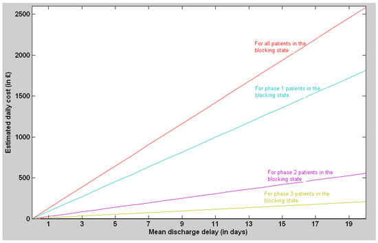 Figure 15. The estimated daily cost of care for patients in the blocking state of each phase (for mean discharge delay τ = 10 days).