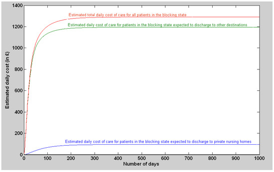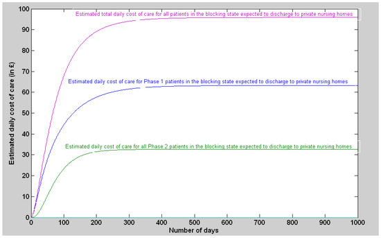 Figure 18. The estimated daily cost of care for patients in the blocking state of each phase expected to be discharged to private nursing homes (for mean discharge delay τ = 10 days).