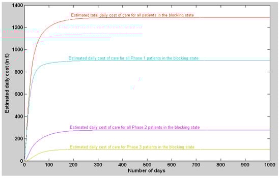 Figure 14. The estimated daily cost of care for patients in the blocking state from each phase (after 1000 days).