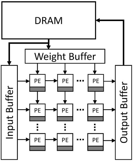 - Chen, Y.H.; Krishna, T.; Emer, J.S.; Sze, V. Eyeriss: An Energy-Efficient Reconfigurable Accelerator for Deep Convolutional Neural Networks. IEEE J. Solid-State Circuits 2017, 52, 127–138. [Google Scholar] [CrossRef]