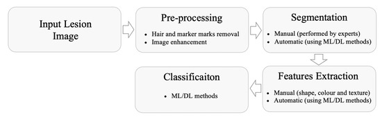 - Section 3. In this section, we discuss and explain several ML and DL methods commonly used for demoscopic image classification tasks.