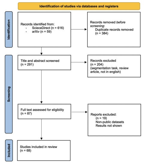 - Section 2. We present the methodology employed to perform the systematic research and present the main public databases containing dermoscopic images, relevant for the paper analysed here.