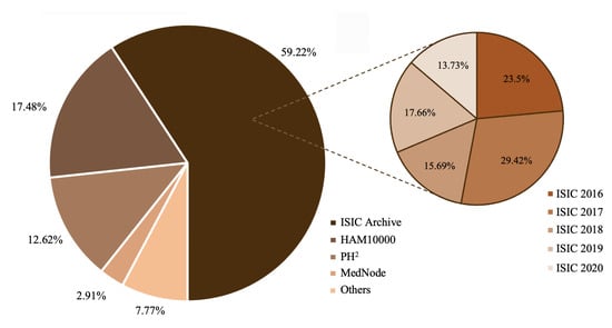 - ISIC archive. The ISIC archive [10], which combines several datasets of skin lesions, was originally released by the International Skin Imaging Collaboration in 2016 for the challenge called International Symposium on Biomedical Imaging (ISBI). Various modifications have been made over the years.