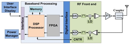 - Kumar, N.; Rawat, M.; Rawat, K. Software-defined radio transceiver design using FPGA-based system-on-chip embedded platform with adaptive digital predistortion. IEEE Access 2020, 8, 214882–214893. [Google Scholar] [CrossRef]
