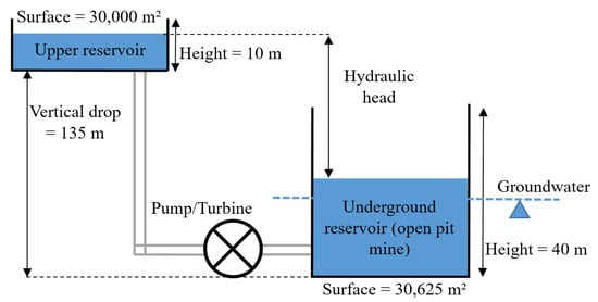 - Pujades, E.; Orban, P.; Bodeux, S.; Archambeau, P.; Erpicum, S.; Dassargues, A. Underground pumped storage hydropower plants using open pit mines: How do groundwater exchanges influence the efficiency? Appl. Energy 2017, 190, 135–146. [Google Scholar] [CrossRef]