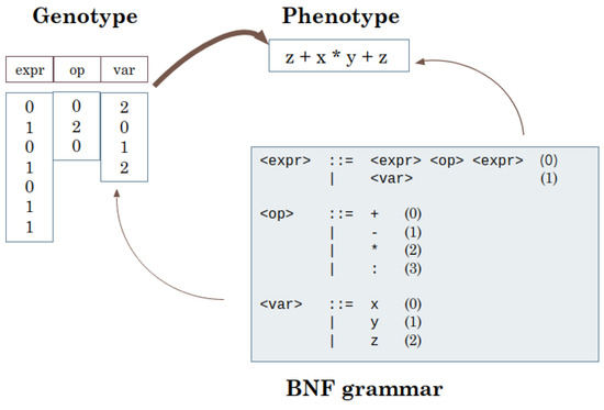 - O’Neill, M.; Ryan, C. Grammatical evolution. IEEE Trans. Evol. Comput. 2001, 5, 349–358. [Google Scholar] [CrossRef]