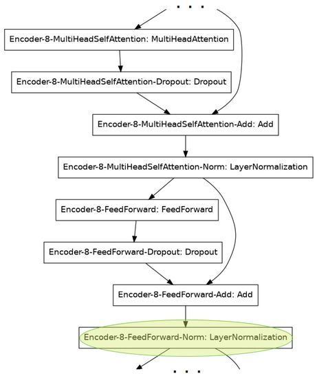 An encoder block of the CuBERT transformer. The activation spaces are defined on the highlighted feedforward layers.