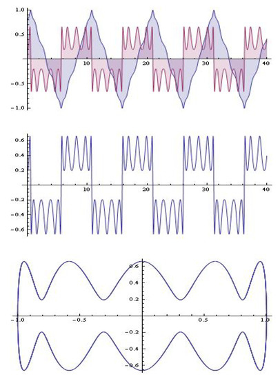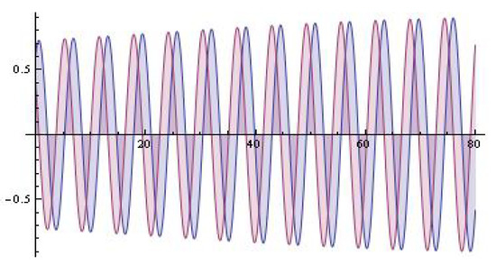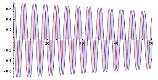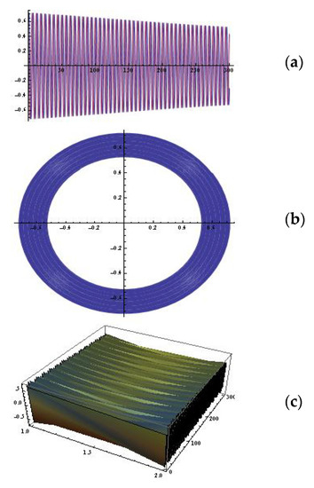 The solution of the system (12) for , , (see oscillator model considered in [7]) is visualized in Figure 12.