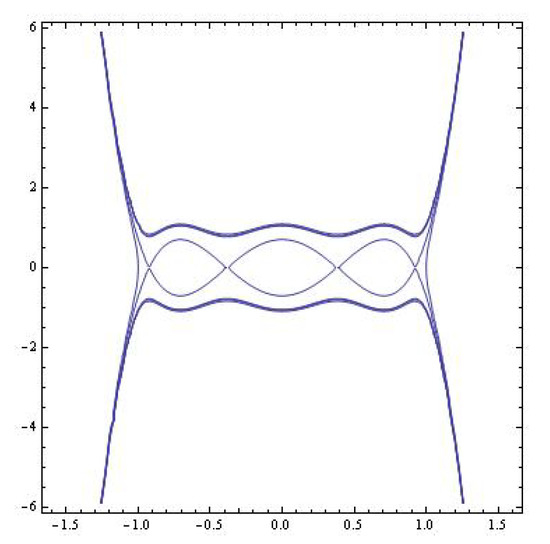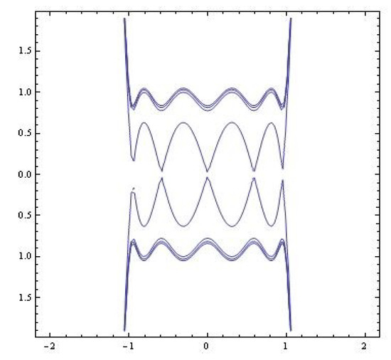 where ; (a) is the Chebyshev polynomial of the second kind and are bounded parameters. Without going into details, we will note some interesting level curves. For , system (14) is a Hamiltonian system with Hamiltonian