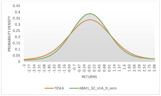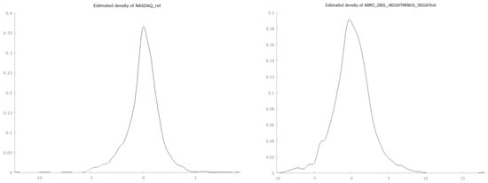 For example, we compare the distributions of returns between NASDAQ and the simulated series ABM3_17_DL_4RIGHT_MINUS_5RIGHT_Z. The Wilcoxon Signed-Ranked Test returns a z = −0.154019 with a corresponding two-tailed p-value = 0.877594. Hence, we fail to reject the null hypothesis that the two distributions share the same location.