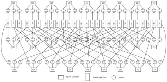 - Han, Z.; Zhang, W. A summary of the BCCC data center network topology. In Proceedings of the 2018 IEEE 4th International Conference on Big Data Security on Cloud (BigDataSecurity), IEEE International Conference on High Performance and Smart Computing,(HPSC) and IEEE International Conference on Intelligent Data and Security (IDS), Omaha, NE, USA, 3–5 May 2018; IEEE: New Jersey, NJ, USA, 2018; pp. 270–272. [Google Scholar]
