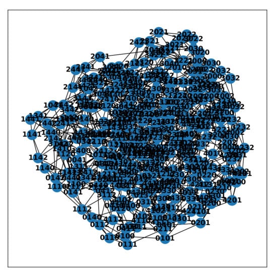 For any two vertices x and y in , the two numbers differ only by one digit. Let denote a different position from left to right. For example, denotes the different number of x and y.