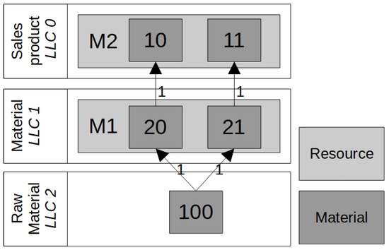 During the execution of the MRP logic, the netting, lot-sizing, backward scheduling, and BOM explosion steps are subsequently performed for the specified planning horizon. For the netting step, the outputs are the items to produce, which are not yet organized as production lots. For the subsequent lot sizing step, the required information is a lot sizing policy, i.e., the fixed order quantity (FOQ) and the associated parameter value representing the amounts for the production lot. One of the targets is to reduce setup times by selecting efficient lot sizes. The process of machine setup plays an important role in the context of lot sizing. The planned lead time is the required input for the step of backward scheduling. With backward scheduling, the start date of a production order is computed. The outputs of the last step (BOM explosion) are the required quantities for the subsequent BOM levels. The items of BOM level 0 are processed, and followed by the process of higher BOM levels. Notice that level 0 provides the gross requirements for subsequent levels: the required quantities for BOM level n are passed to BOM level . Our actual research activities are focused around MRP and it is, therefore, the selected production planning approach for this publication. MRP is still widely applied in industry and the target of current research activities. Therefore, this article will contribute to MRP-related research activities and provides also input for practitioners of systematically setting MRP planning parameters with respect to minimizing inventory and backorder costs.