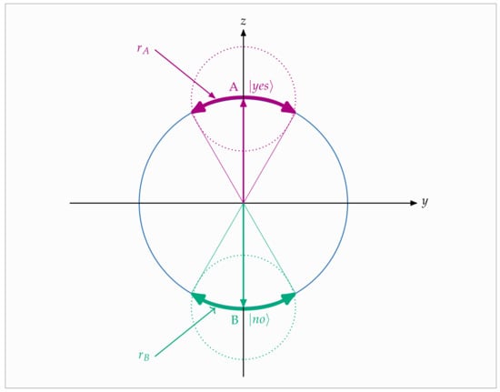 - As seems fitting in a quantum parliament, this party decision is viewed as a suggestion or recommendation from the leadership of the party to its representatives. Specifically, both parties A and B adopt and tolerate free will radii and , respectively, such that . This is viewed as a result of the democratic tradition and sociopolitical culture of each party. Therefore, the vote of a legislator need not coincide with the decision of the party’s leadership; it suffices to be within a distance less than or equal to the free will radius of the party. The notion of distance will be made rigorous in the next Section 4.