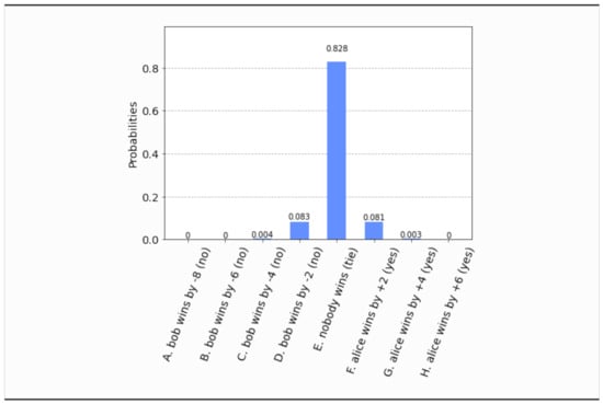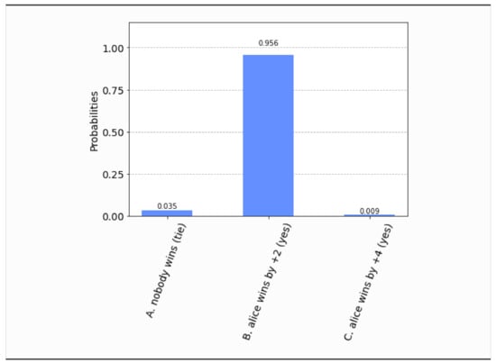 Let us point out that ’quantum games’ is a noteworthy and dynamic field of the quantum era. Quantum games have addressed important and, sometimes, difficult problems in the quantum realm. We present the voting process as a quantum game in an attempt to make the whole setting more mnemonic and playful. One may recall that cryptographic protocols are usually presented as games between the two fictional heroes Alice and Bob, who are the two remote parties trying to safely exchange messages. A typical and convincing example is the quantum game of coin tossing and its relation to the BB84 protocol (see [25,26] and the more recent [27]). This setting has already been generalized to higher dimensions in [28]. For the interested reader we mention two landmark papers in the field of quantum game theory going back to 1999, which helped shape the field. One is Meyer’s PQ penny flip game [29], which can be regarded as the quantum analogue of the classical penny flip game, and other is the introduction of the Eisert–Wilkens–Lewenstein scheme [30] that is widely used in this area. With respect to the PQ penny flip game, some recent results are presented in [31,32]. The Eisert–Wilkens–Lewenstein scheme was especially successful in quantum adaptations of the famous Prisoners’ Dilemma, where the quantum strategies outperformed the classical strategy, and also to quantum extensions of the classical repeated Prisoners’ Dilemma conditional strategies (see [33]). Winning strategies for abstract quantum games can also be encoded as infinite words accepted by quantum automata, as was demonstrated in [34].