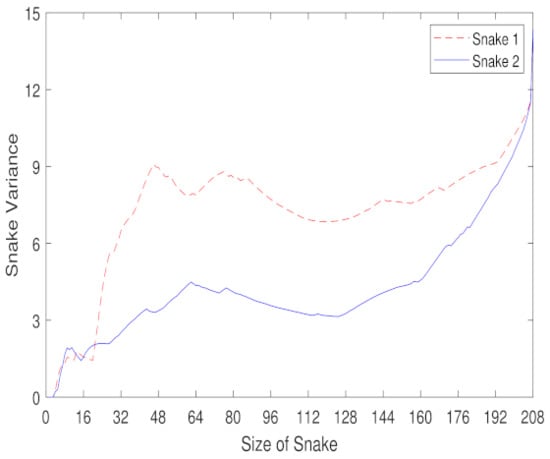 To further investigate, we plot the variance of the first and the second snake of the network of links (Figure 4). Based on these properties of the snake, we propose to put more weights on the links that are spatially closer to each other, and their corresponding snakes will converge to the same point [17].