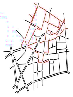 Snake computed on the network of the sixth district of Paris. The number of links in the snake is equal to 64.