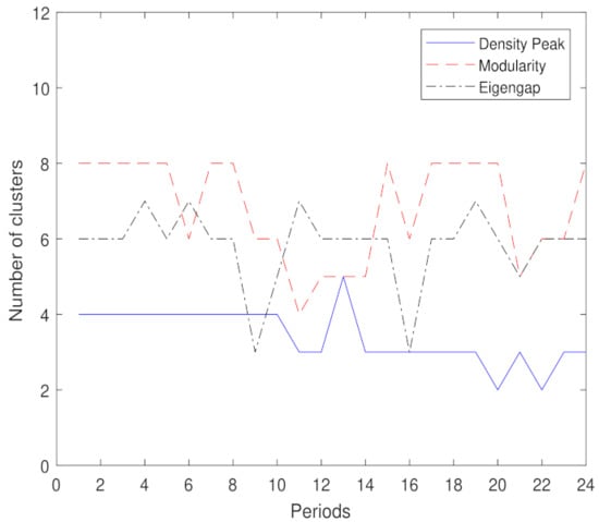 The similarity, in this case, will be a sparse matrix, as some links have zero similarity, which can simplify the complexity of the clustering algorithm [8]. Determining the number of clusters in a data set is a frequent problem in data clustering. Choosing the appropriate number of clusters is often ambiguous, with interpretations depending on the shape and scale of the distribution of points in a data set. Many measurements have been developed for finding the optimal number of clusters. In early research, the authors proposed an algorithm to estimate the optimal number of clusters in categorical data clustering by a silhouette coefficient, which is a useful technique for assessing the number of clusters [20,21].