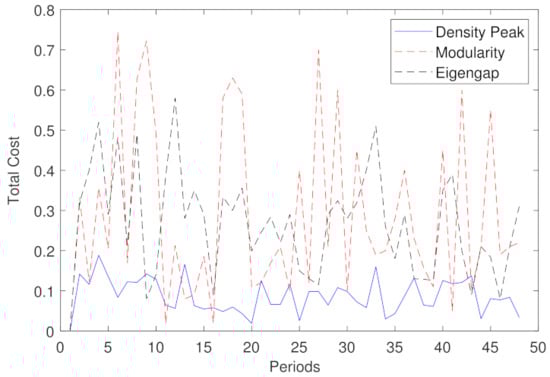 where and are the sets of top K-eigenvectors at time period t and , respectively. In this case, the evolutionary total cost can be expressed by: