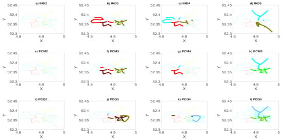 Another method was proposed in which the authors elaborated an approach based on discovering the clusters of trajectories by grouping similar trajectories that visited the same links of the network [11]. Then, they extended their work to the case of links, where they grouped the common links that were visited by a large number of trajectories [12]. Therefore, the community-detection algorithm used in the clustering step of their proposed framework can be sensitive to the presence of noise, which can degrade the quality of clusters.