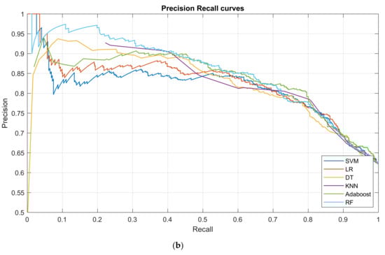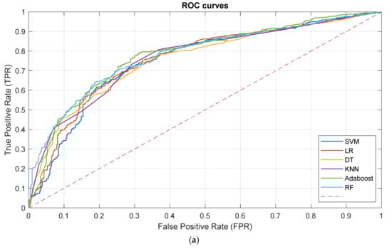 Statistical analysis was also performed using McNemar tests [49] to identify significant differences in the performance of the competing ML models. Adaboost was proved to be significantly more accurate than SVM (p = 0.0162), LR (p = 0.0096), DT (p = 0.0185) and KNN (p = 0.0213) at a confidence level of 5%. Adaboost performance was not statistically higher than the performance of RF (p = 0.0572).