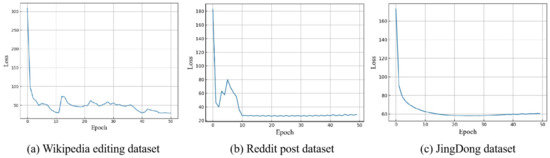 The Wikipedia dataset, the Reddit dataset, and JingDong dataset are used for evaluation, and Table 2 presents the details of three datasets.