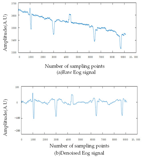 Initially extracted EOG signal was interspersed with significant industrial frequency interference and unavoidable baseline drift which needs to be pre-processed [14]. The frequency of the EOG signal is in the range of 0.2–30 Hz. The main interference sources are baseline drift and power frequency noise. To eliminate power line interference and baseline drift, a notch wave of 50 Hz and a fourth-order band-pass filter of 0.2–30 Hz is devised in this article.