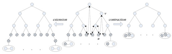More specifically, when an element is added/removed to/from a leaf u in a tree structure , the weights on the path from u to the root must be updated. This is a costly operation, when it is performed on every element update. Instead of updating weights every time, a new metric is defined, virtual weight. Assume that node v lies at height h and its children are at height . of v is defined as the weight stored in node v. In particular, for node v the following invariants are maintained: