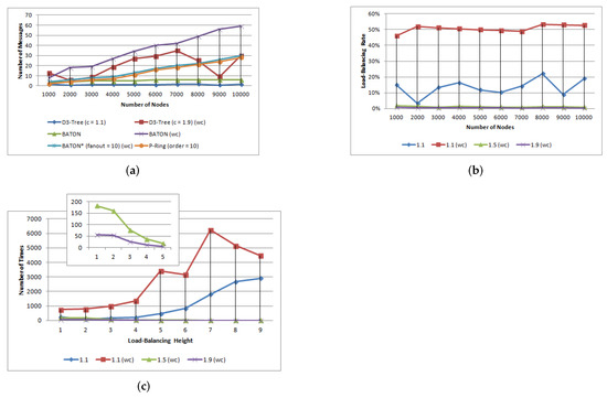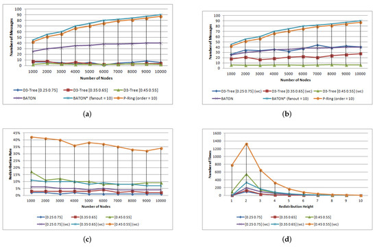 Conducting experiments, we observed that in the average case, the -Tree outperforms BATON, BATON, and P-Ring. However, in -Tree’s worst case, the load-balancing performance is degraded compared to BATON of fanout = 10 and P-Ring.