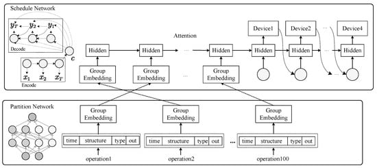is a Seq2Seq network with an attention mechanism and LSTM, and the input and output sequences of variable length are processed through the encoder and the decoder, respectively. As shown in Figure 2, encoder reads the group embedding of at a time and generates k hidden states, where k is a hyperparameter equal to the number of groups.