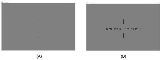 Figure 2 portrays the outline of the experiment. Each slide containing the set of words (task trials) was preceded by a slide containing only the vertical lines without the word set (stand-by slides) to keep the gaze of participants at the middle of the screen throughout the experiment. Each of the stand-by slides was presented for U(2,2.5) s, while each slide containing the set of words was presented for a maximal duration of 8 [s]. Following a task trial, participants could move to the next slide with a button press. The sequence of the task trials was randomized in each session.